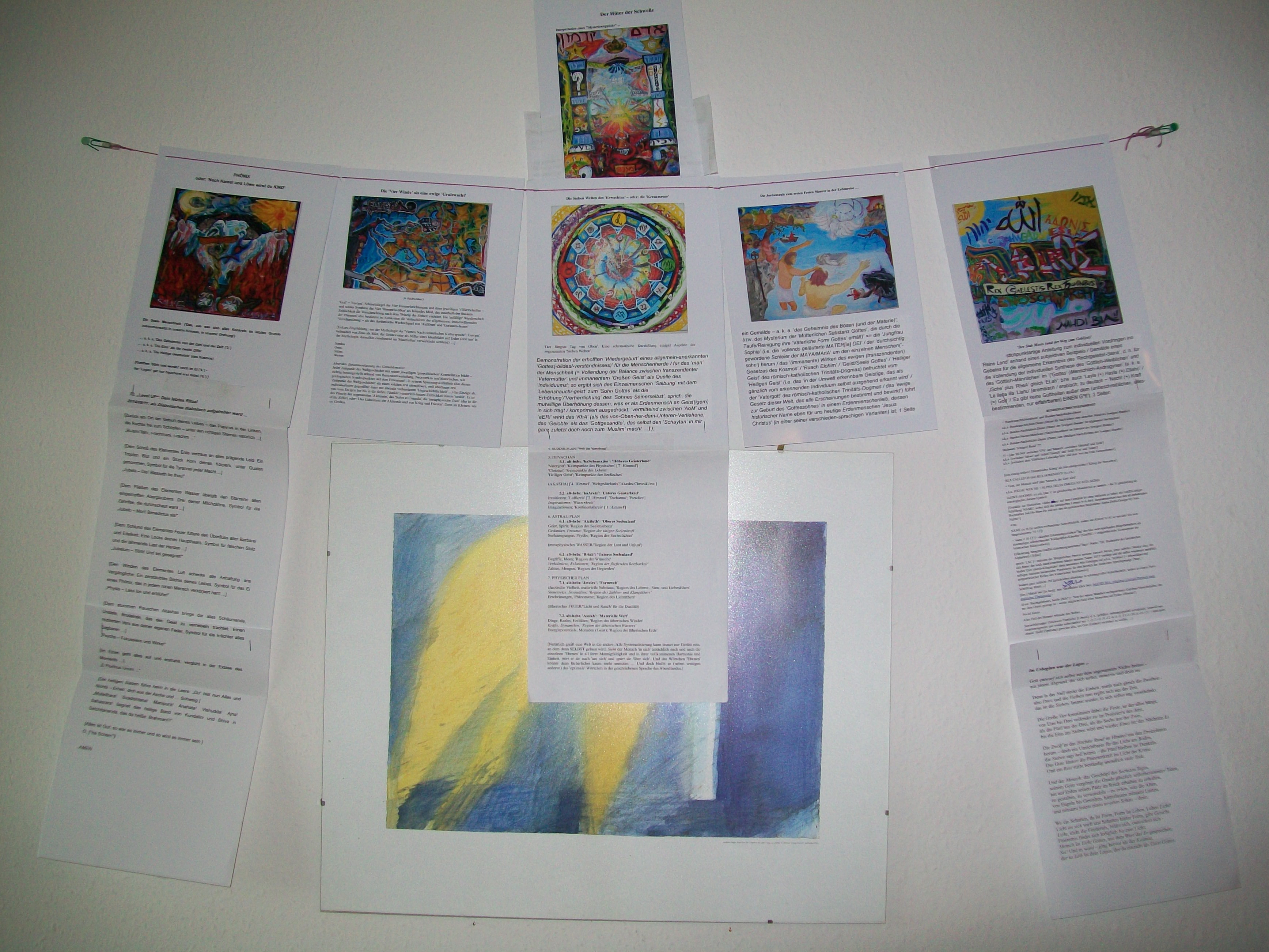 Im Urbeginn war der Logos/Die Sieben Welten Gemälde: ‚Apokalypse von Oben‘; Stichpunkte zur esoterischen Kosmologie, Gedicht zu den ‚Sieben Unaussprechlichen‘; 3 Seiten